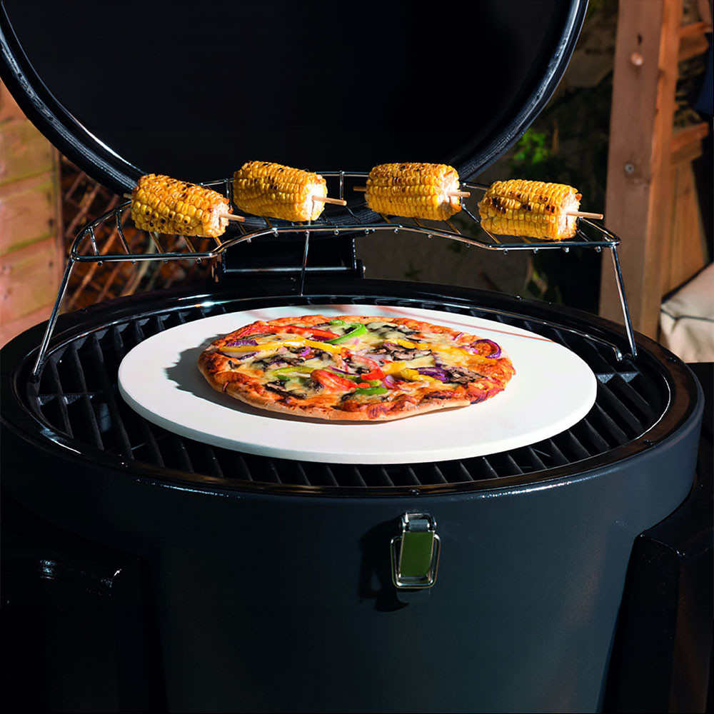 Reinforced for durability, this Dragon Egg Charcoal Grill is well-equipped to handle the heat. Not only does it come with a double-skinned hood and body, but it also has an enamelled firebox and heavy-duty wheels, making it a reliable choice for your outdoor cooking endeavours. Plus, it comes with a bonus pizza stone for added culinary creativity.