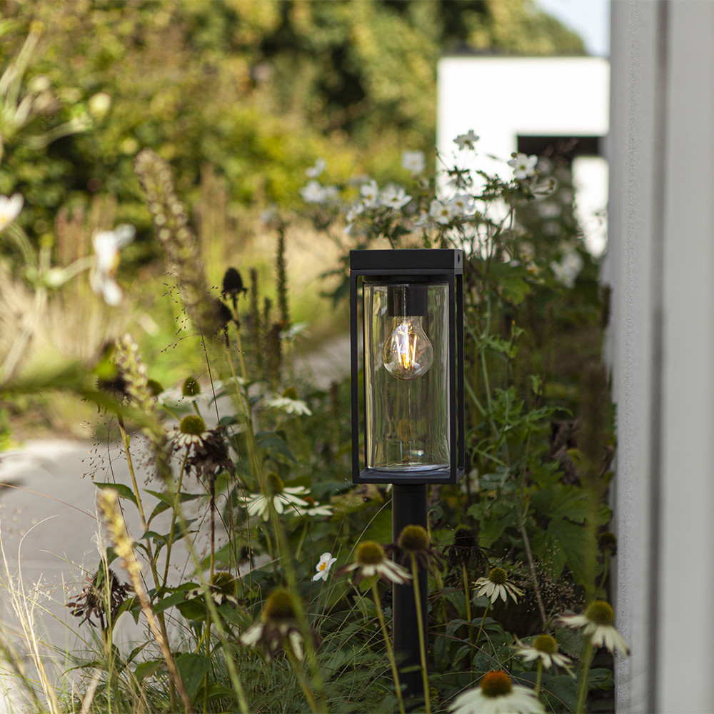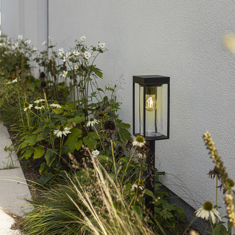 Made from durable heavy-duty aluminium finished in a sophisticated matt black, it comes adorned with a clear glass diffuser, which ensures this bollard light exudes both resilience and charm. Complete with an E27 filament low voltage bulb included, the LUTEC Flair Solar Bollard Light is the epitome of sophistication and functionality, enhancing the beauty and security of your home's outdoor spaces.