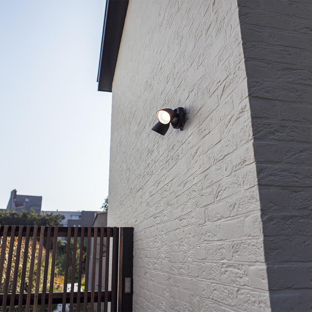 LUTEC's Shrimp IP54 Integrated LED Outdoor Security Light is an effective lighting solution with an adjustable twin-head, perfect for safeguarding your home, illuminating driveways, bike sheds, and walkways and ensuring that every corner of your property stays well-lit and secure.