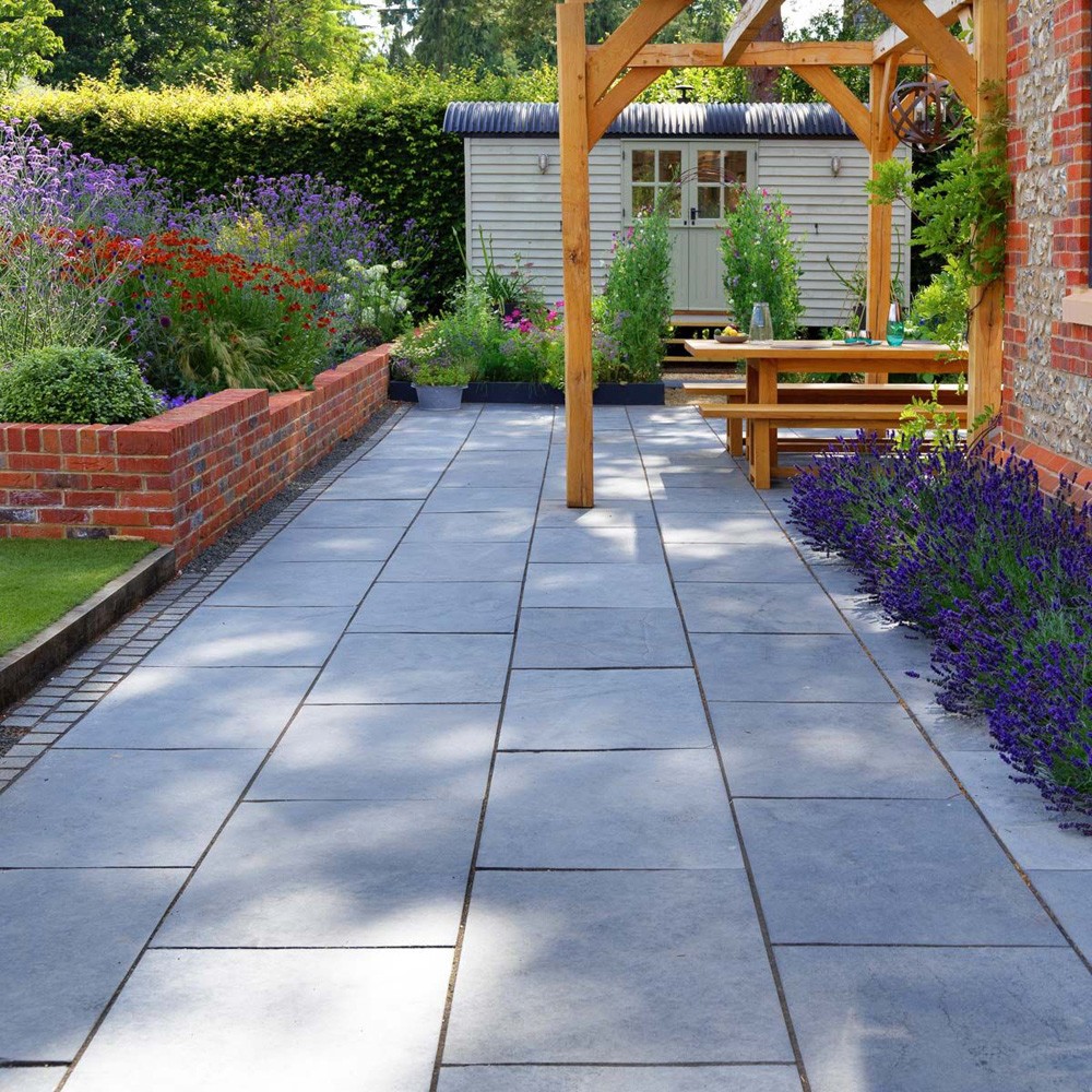 Pavestone Kadapha Black Limestone Paving Slabs feature a lightly riven surface and modern sawn edges, allowing for tight, close-jointed installation. They are available in both single-size packs and mixed-size contractor packs to suit various design needs. Kadapha Black Limestone is a firm favourite amongst many Landscapers and homeowners.