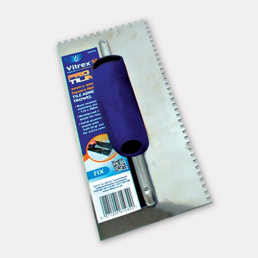 Features & Benefits: Professional Stainless Steel Mosaic Trowel 4mm Square Notch
