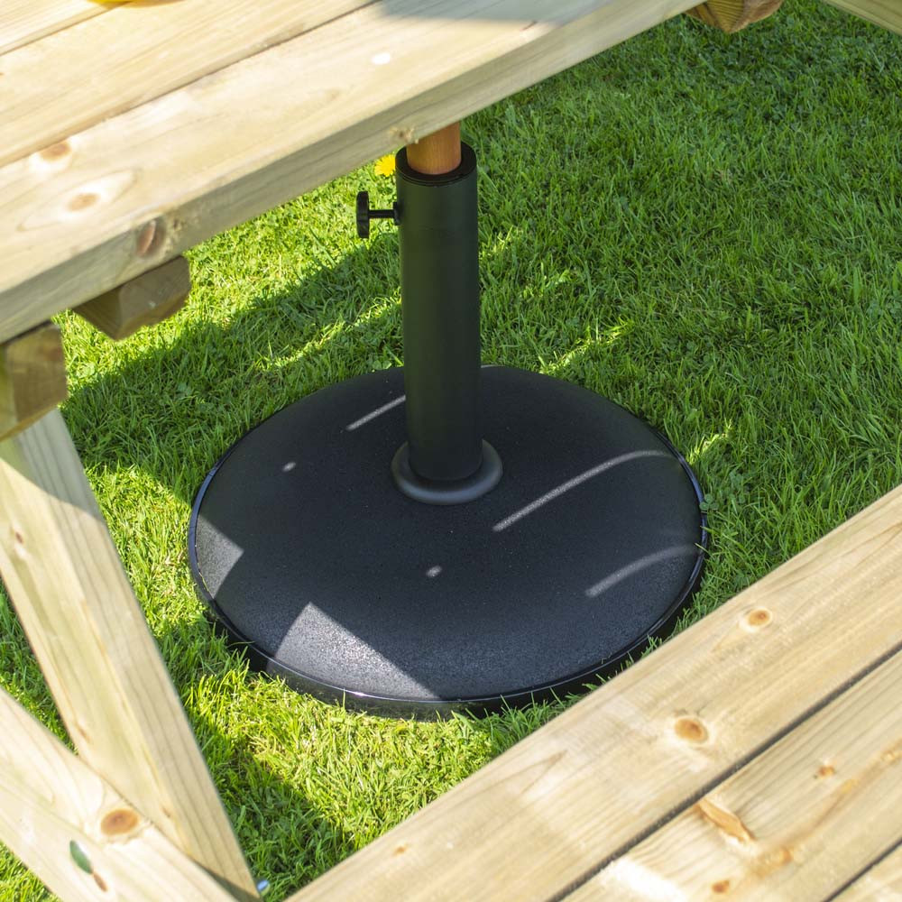 Whether you want to use the parasol on a lawn, paved patio, composite decking area or concrete, thanks to the Rowlinson Parasol Base, you can guarantee shade wherever you are. The base is made from a concrete/resin mix and weighs 15kg, meaning even in a breeze, the parasol will remain firmly in place.