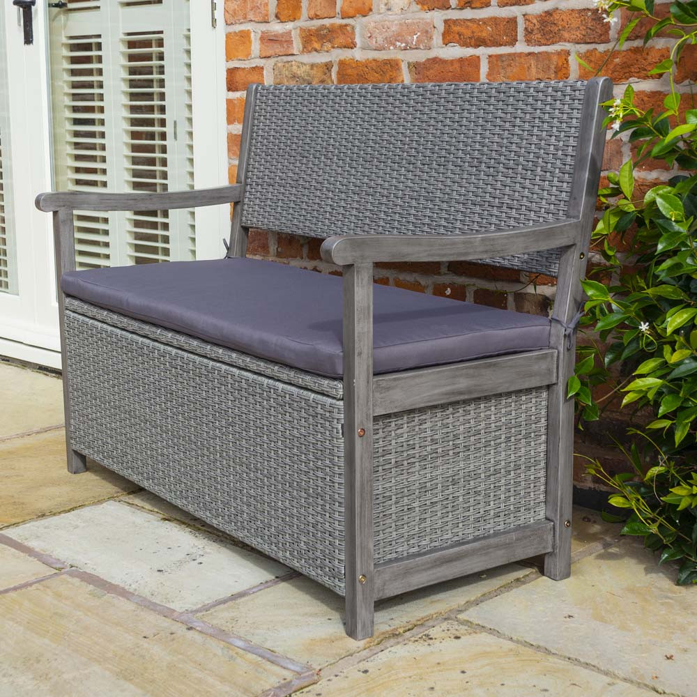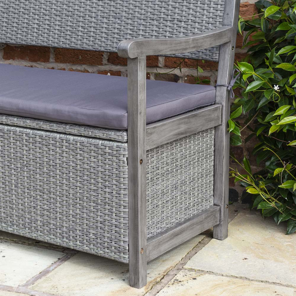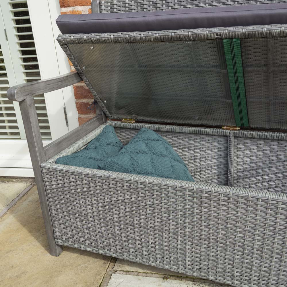 Features & Benefits: Rowlinson Alderley Rattan Effect Weave Outdoor Storage Bench - Gunmetal Grey
