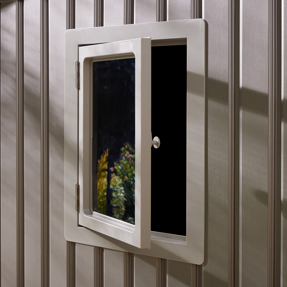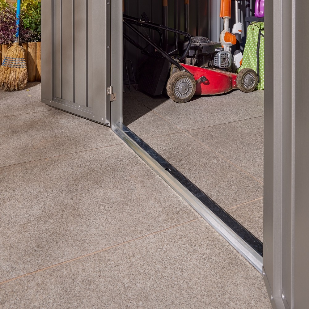 Designed with over six-foot-high walls, the Brentvale shed offers plenty of storage capacity and excellent headroom. The double doors ensure convenient access, featuring a low threshold for easy item retrieval. Each door is reinforced with three hinges for enhanced durability and secured with a strong cylinder lock and lever mechanism to safeguard your belongings.