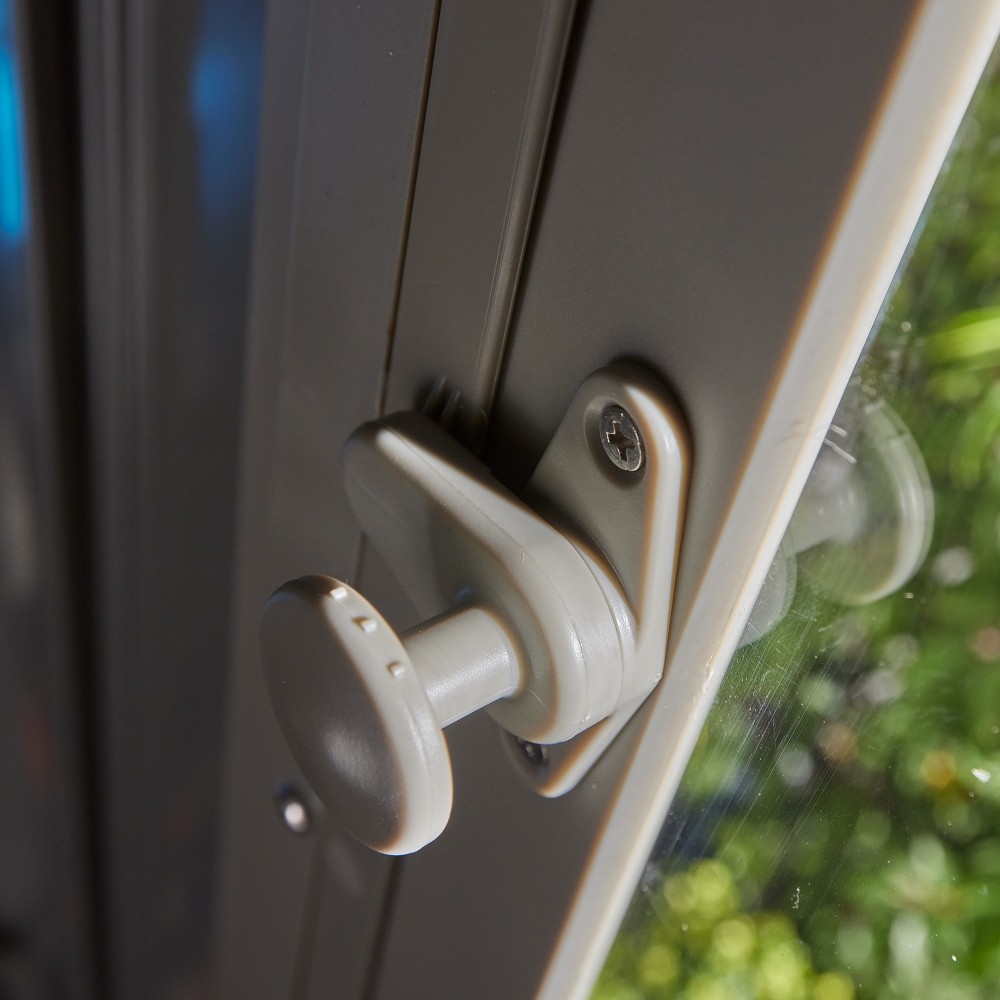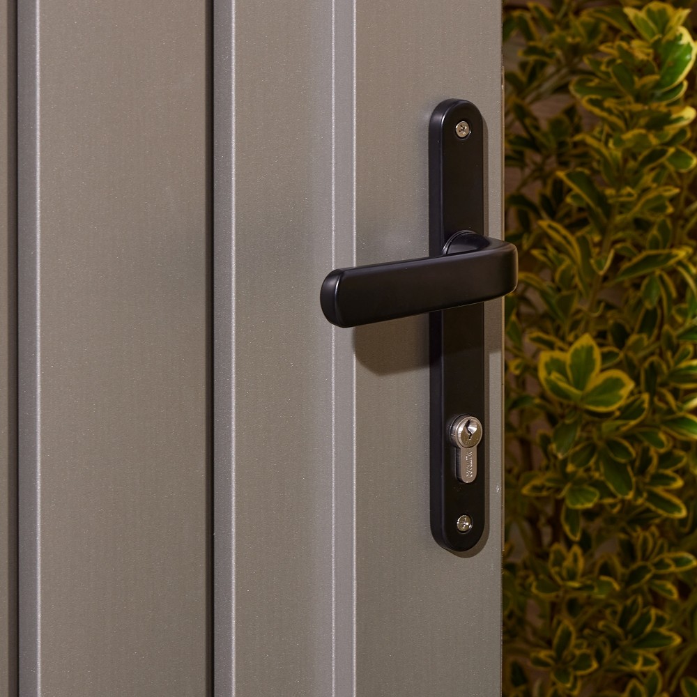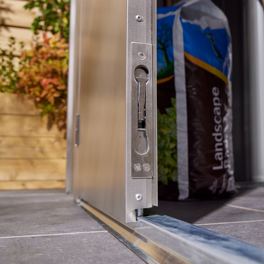 Brentvale sheds are designed with over six-foot walls, offering ample storage space and generous headroom. The double doors provide easy access, complemented by a low threshold for effortless handling of items. Each door is equipped with three hinges for added strength, along with a robust cylinder lock and lever mechanism to keep your belongings secure.
