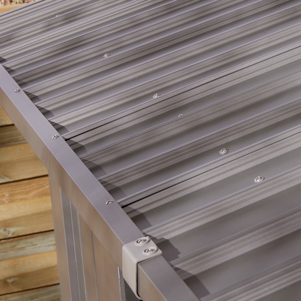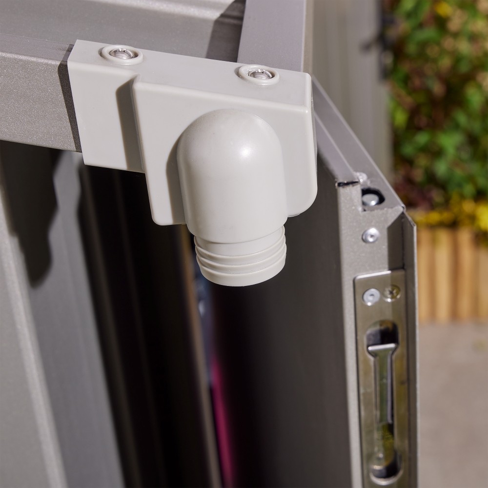 The Rowlinson 8ft x 6ft Brentvale Metal Shed is crafted from high-quality hot-dipped galvanized steel, ensuring a safe and secure space for all your garden essentials. The shed features a built-in gutter system with downspouts at each corner, effectively channeling rainwater away.