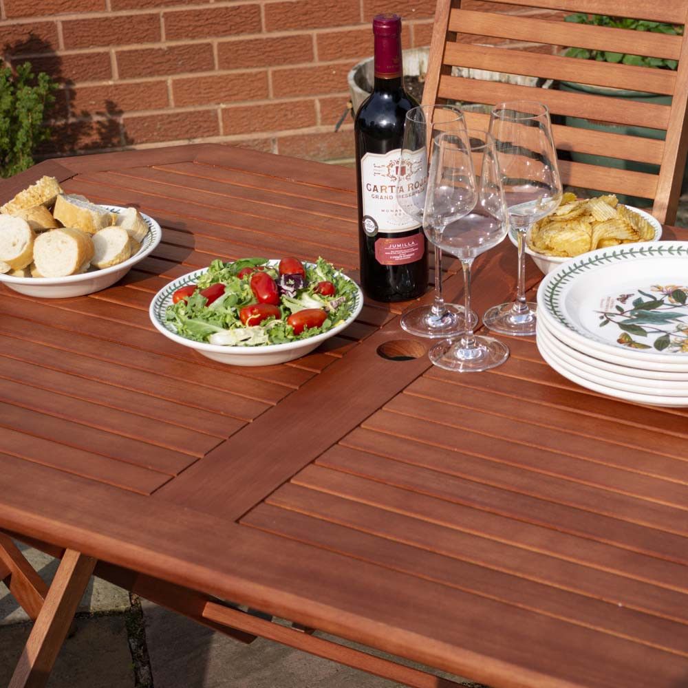 Should a sudden downpour occur or you simply wish to clear some space on your patio or veranda, the table and chairs can all be folded away quickly and easily. This means you can store the entire set within a garage or large shed with minimal hassle.