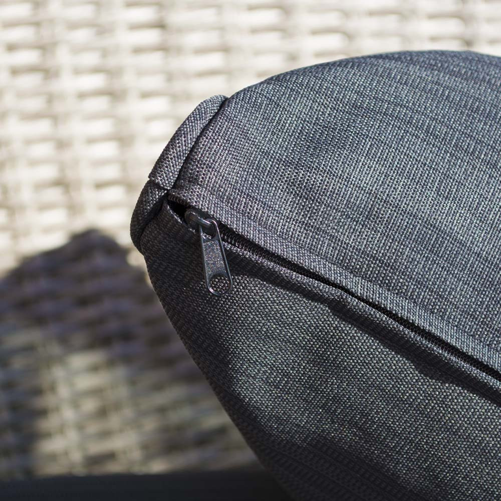 The set comes with dark grey seat pads and cushions, which complement the its contemporary grey finish and provides an added touch of comfort.