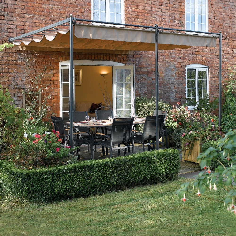The Rowlinson St. Tropez Canopy 3300mm x 3000mm is a wall-mounted canopy, perfect for creating a comfortable, shaded area for outdoor dining or seating. Constructed from strong and sturdy steel with wall fixing bolts included.