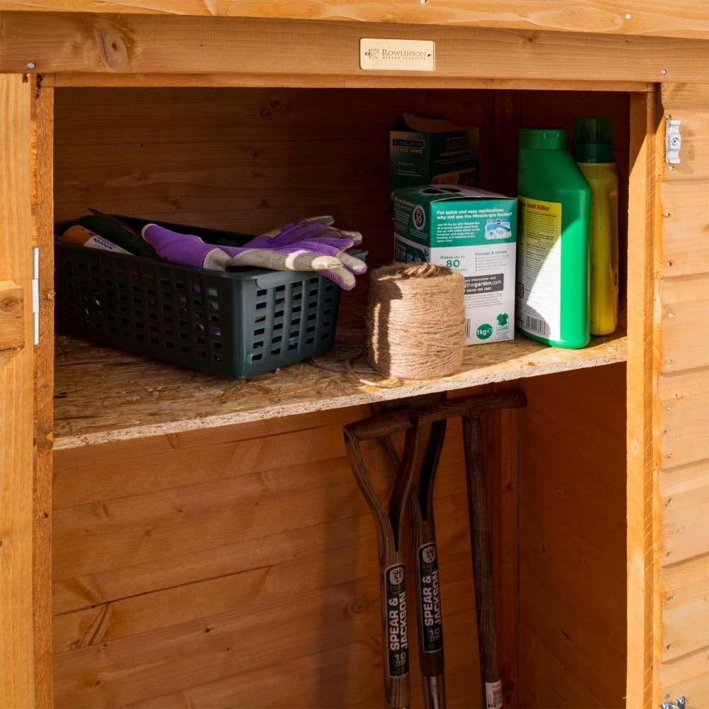 Rowlinson Midi Store measures 1845mm x 935mm x 640mm and is the perfect storage solution if you have a smaller garden or patio. The Rowlinson Midi Store has a handy shelf, it is simple and convenient and keeps your outdoor space clutter free. It comes in a dipped honey-brown finish that can be painted or stained if desired.