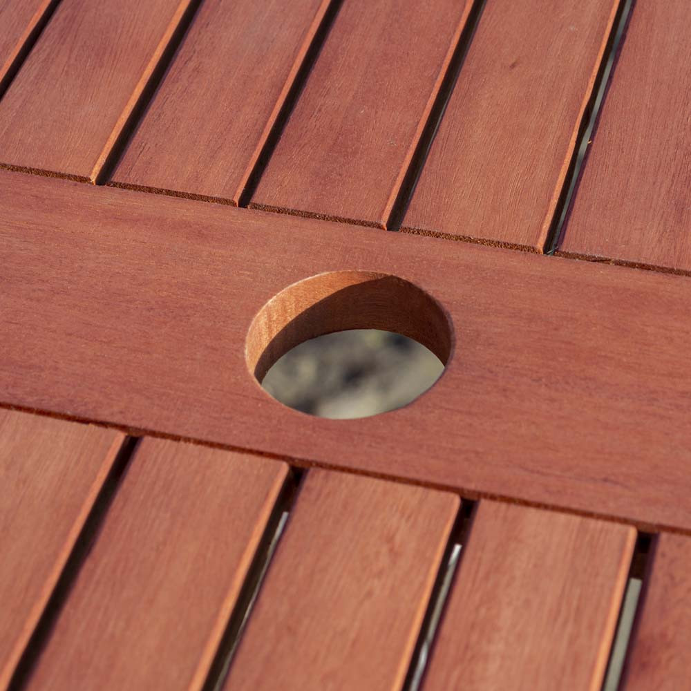 The centre of the table features a 50mm hole, which can be used to accommodate a parasol, protecting diners from the heat and glare of the sun.