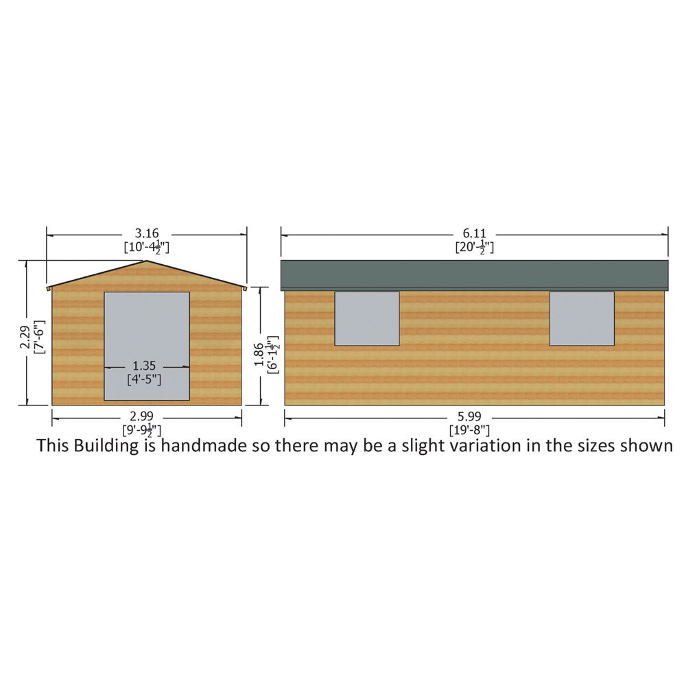With heavy-duty 3-inch x 2-inch (70mm x 44mm) framing, much larger than Shire's standard framing, the Bison Multi-Functional Shiplap Apex Workshop Shed boasts tremendous strength and robustness. Assisting in protecting your Workshop Shed against the elements and enhancing its durability and longevity, the high-grade 12mm shiplap cladding will help protect it from rain and wind penetration. The timber used to construct this Workshop Shed is sourced from very slow grown, high grade, FSC approved European pine, which is treated with a protective basecoat. This basecoat means that all that is left for you to do is apply a protective topcoat upon installation.