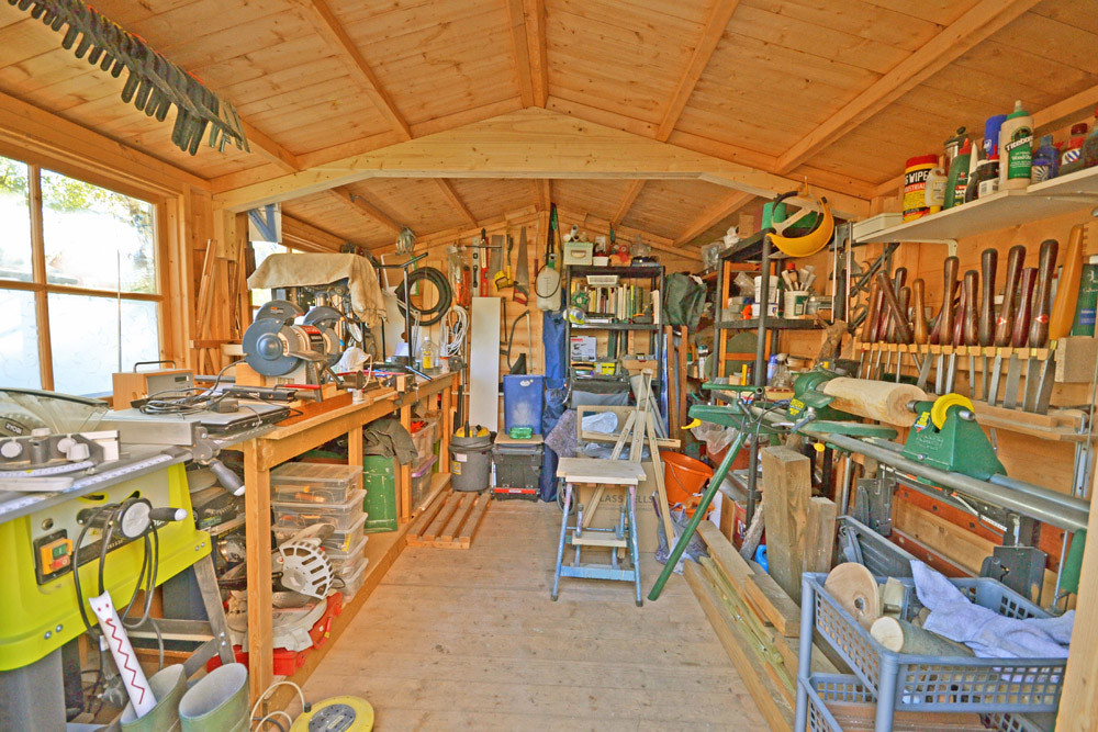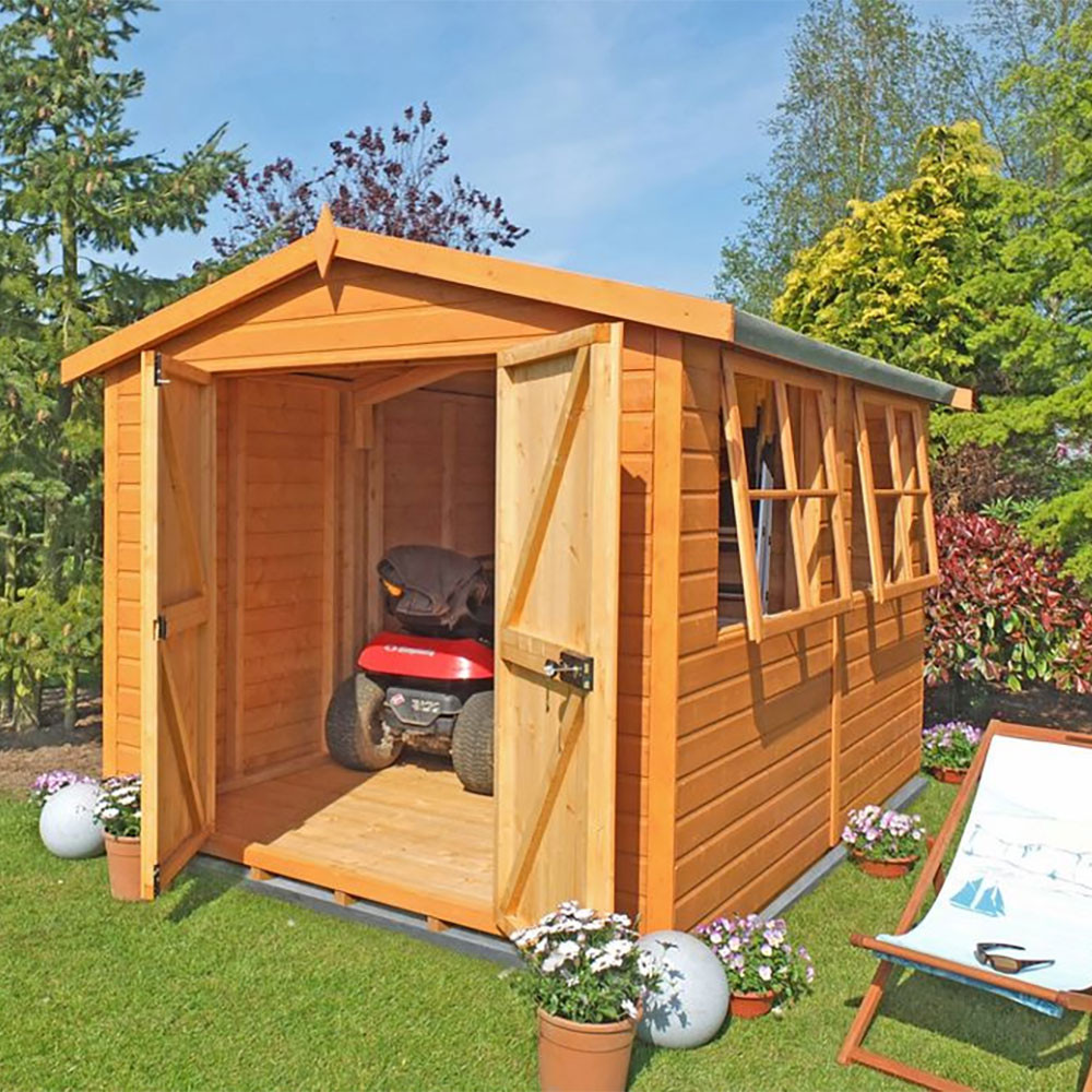 Find out moreThe felt roofed handmade Shire Bison Multi-Functional Shiplap Apex Workshop Shed range comes in a variety of sizes and is suitable for a number of domestic jobs, from a secure space for storing your large power tools, patio furniture and gardening equipment to a dry and safe environment for you to carry out DIY projects and repairs. As well as two fully framed braced doors and two opening storm-resistant windows, the FSC certified Bison Workshop Shed features a supported workbench, allowing you to work on your projects in comfort.