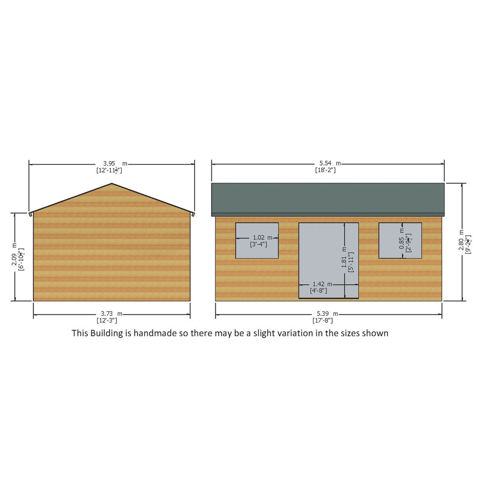 The Mammoth Loglap Apex Workshop Shed has top-hung windows that feature 3mm thick storm-resistant glass, which allows natural light to flood into the building. With double doors, individuals can easily access the workshop and store large equipment inside with minimal hassle. The ceiling has a minimum height of 6ft (at the eaves), so headroom won't be an issue. You can move around your workshop freely and comfortably without having to stoop or bend.