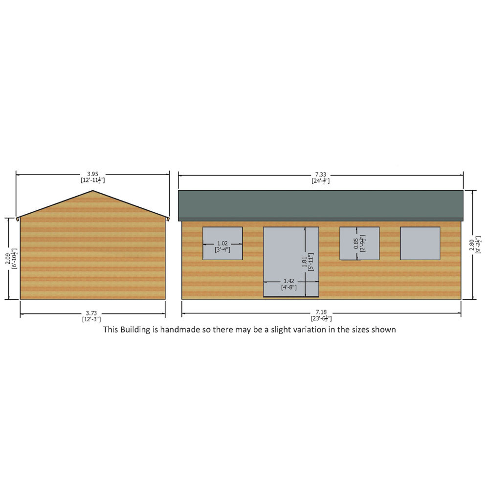 The Mammoth Loglap Apex Workshop Shed has top-hung windows that feature 3mm thick storm-resistant glass, which allows natural light to flood into the building. With double doors, individuals can easily access the workshop and store large equipment inside with minimal hassle. The ceiling has a minimum height of 6ft (at the eaves), so headroom won't be an issue. You can move around your workshop freely and comfortably without having to stoop or bend.