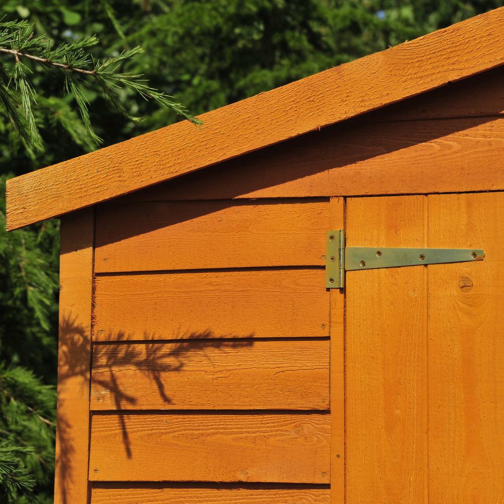 There are no windows in this shed which makes it perfect for keeping your belongings out of sight. With robust 34mm square framing, this Shire shed comes complete with installation instructions, roofing felt and a fixing kit, everything you need for a straightforward assembly process. Both the floor and roof are fabricated from solid sheet OSB while the wall panels are produced from high-grade, slow-grown, FSC Certified timber. The building is dip-treated with a base coat, ready for you to apply a top layer after assembly.