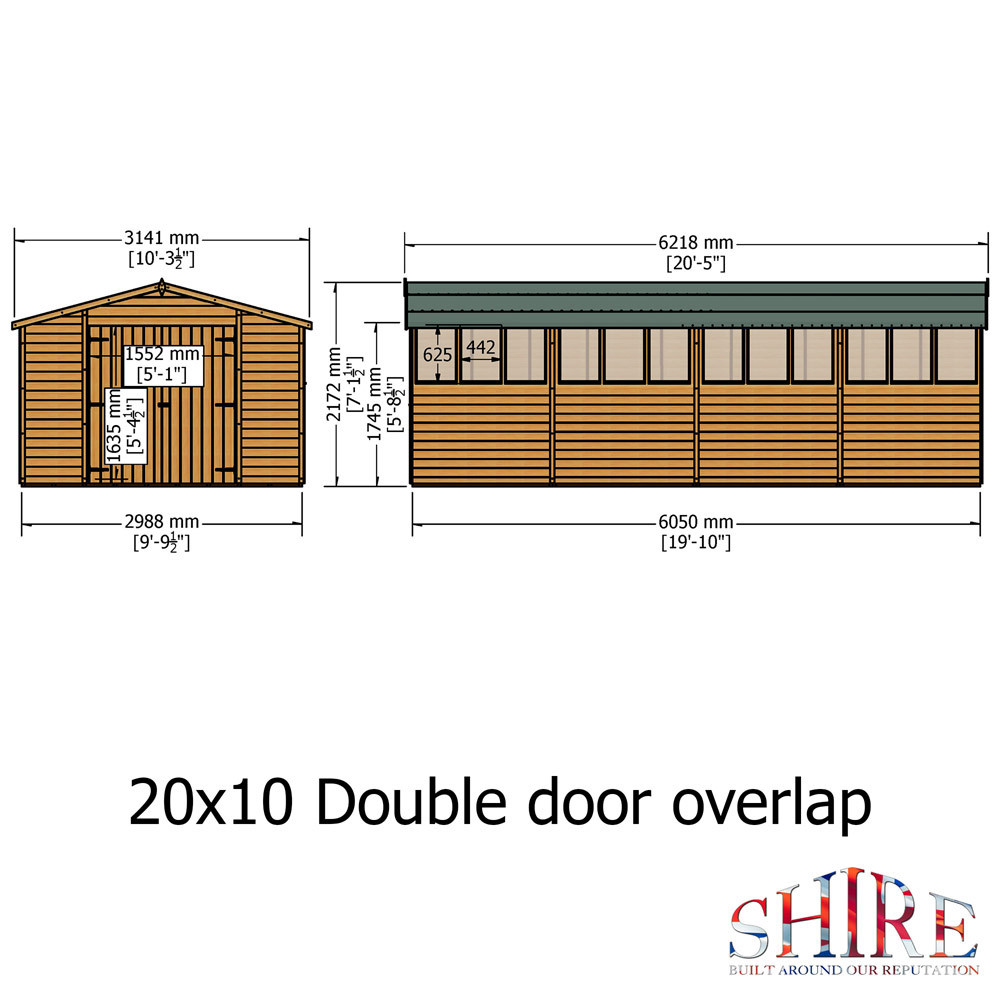 Shire Overlap Garden Shed with Double Doors - 20ft x 10ft (6050mm x 2988mm)