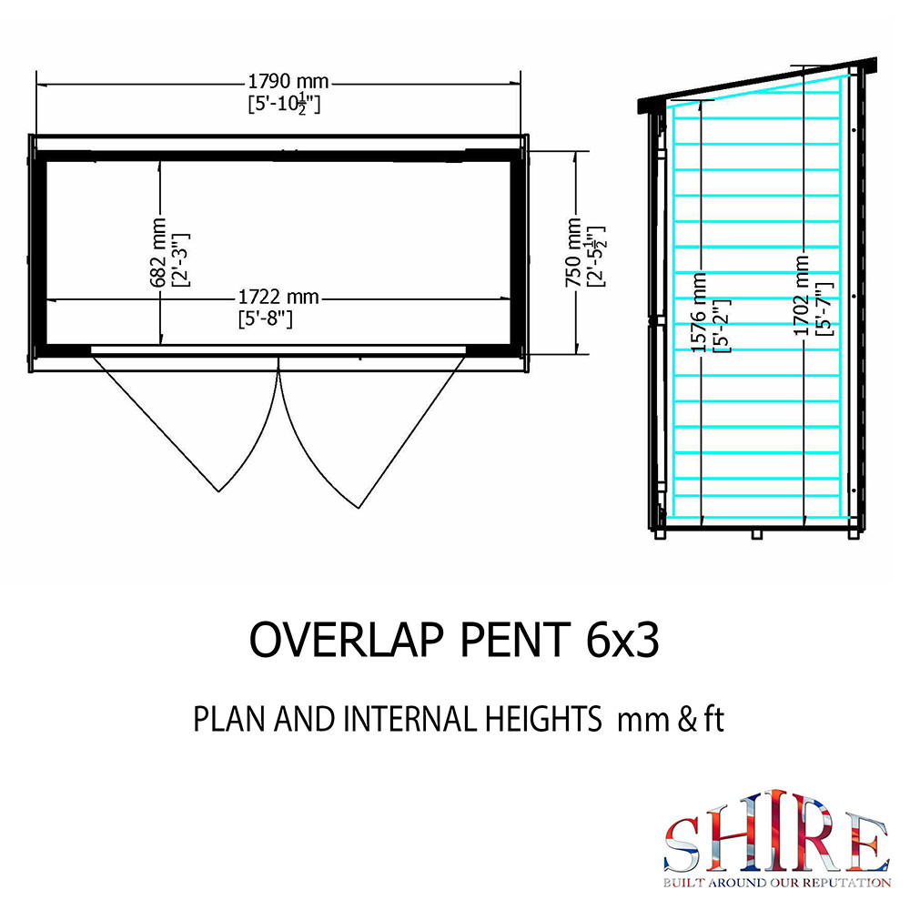 Features & Benefits: Shire Pressure Treated Overlap Pent Shed - 6ft x 3ft (1790mm x 750mm)