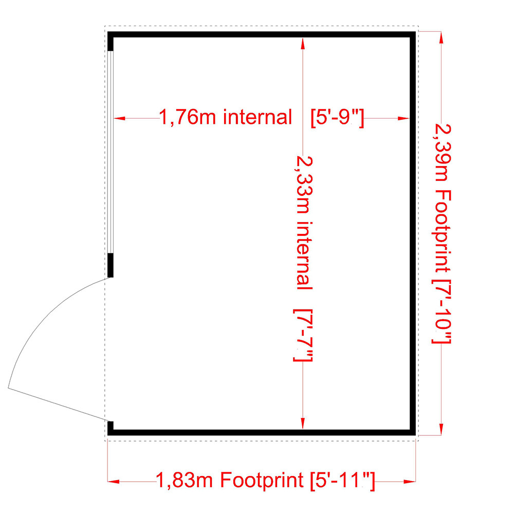 • 8ft x 6ft (2390mm x 1830mm) shed size