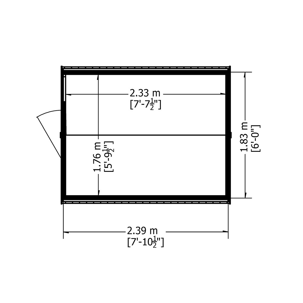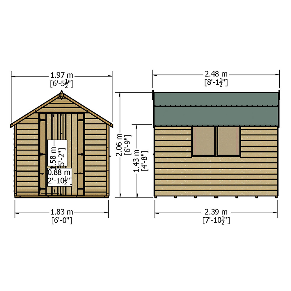 • 6ft x 8ft (1830mm x 2390mm) size shed