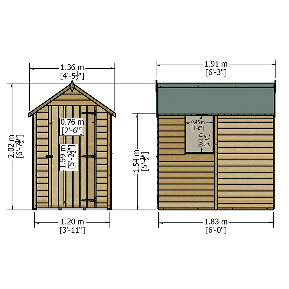 Shire Super Value Window Overlap Apex Shed - 4ft x 6ft (1200mm x 1830mm)