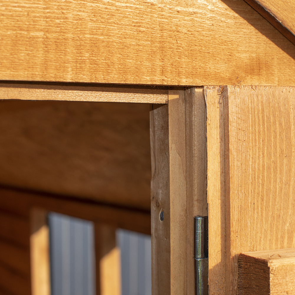• Using good quality timber is the start of any good quality timber garden building. Shire garden buildings are constructed using high-quality spruce under strict FSC (Forestry Stewardship Council) guidance. Spruce is more durable than pine. It enables a higher-quality finish and is slow-grown to ensure a tighter grain, less sap and far fewer knots and warping occurring. Slight splits or 'shakes' may sometimes be seen in the timber. These are normal and will not affect the performance of your Garden Building.