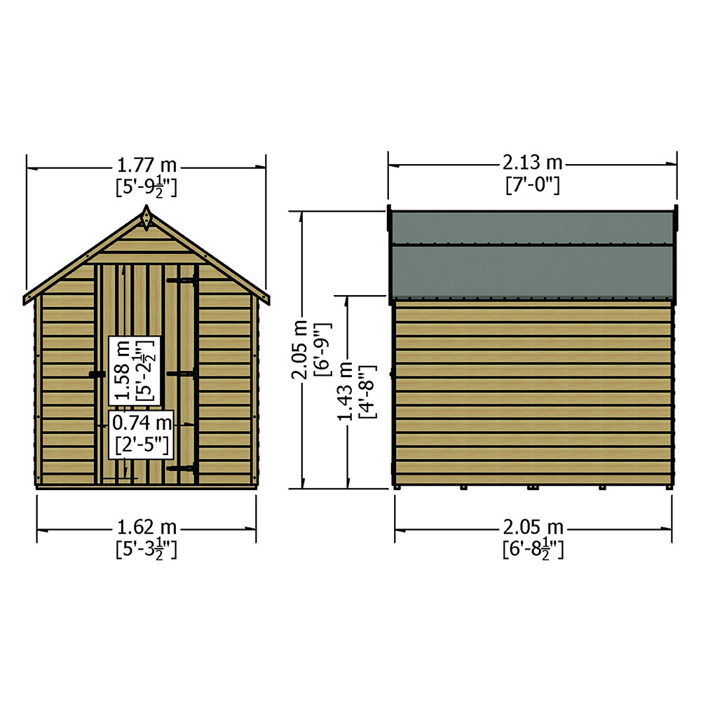 Features & Benefits: Shire Value Pressure Treated Overlap Apex Shed - 5ft x 7ft (1620mm x 2050mm)