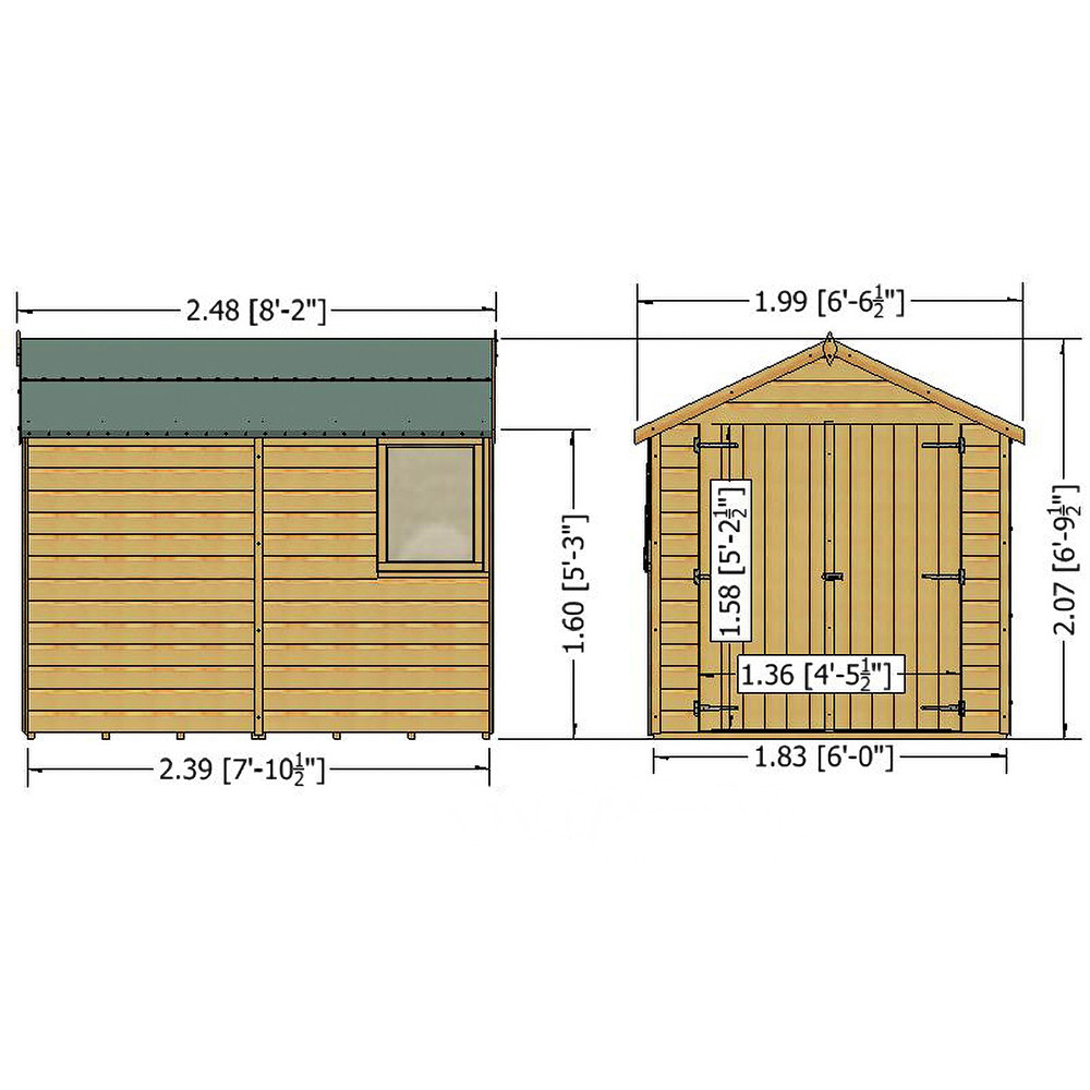 Shire Warwick Shiplap Apex Shed - 6ft x 8ft (1830mm x 2390mm)