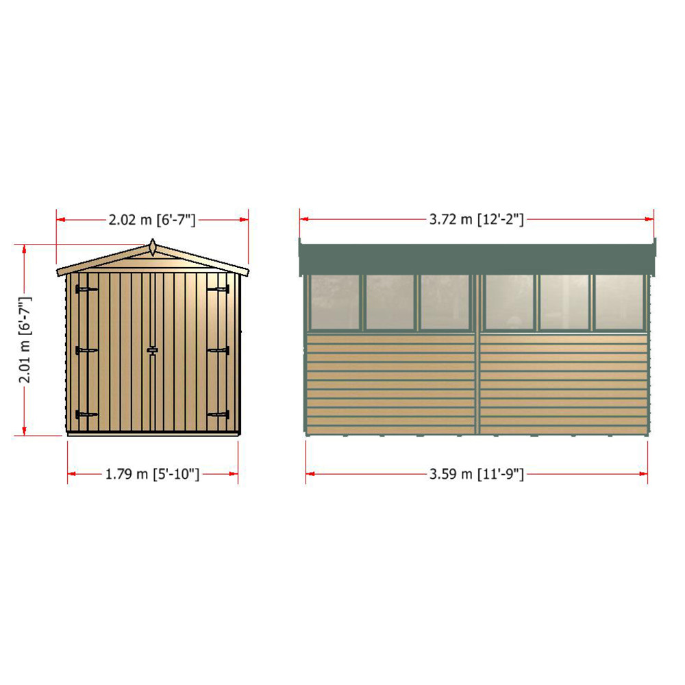 Shire Window Overlap Apex Shed - 6ft x 12ft (1790mm x 3590mm)