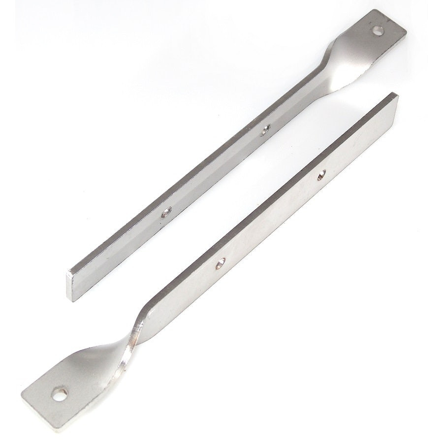 Each bracket is made from 25mm x 3mm stainless steel and is available in various lengths to suit your project needs. The design allows horizontal or vertical wire runs, with two, three, or four 8mm diameter fixing holes. The first hole is 50mm from the end, followed by holes at 60mm centres, and a twist begins 50mm from the final hole to guide the wire rope securely.