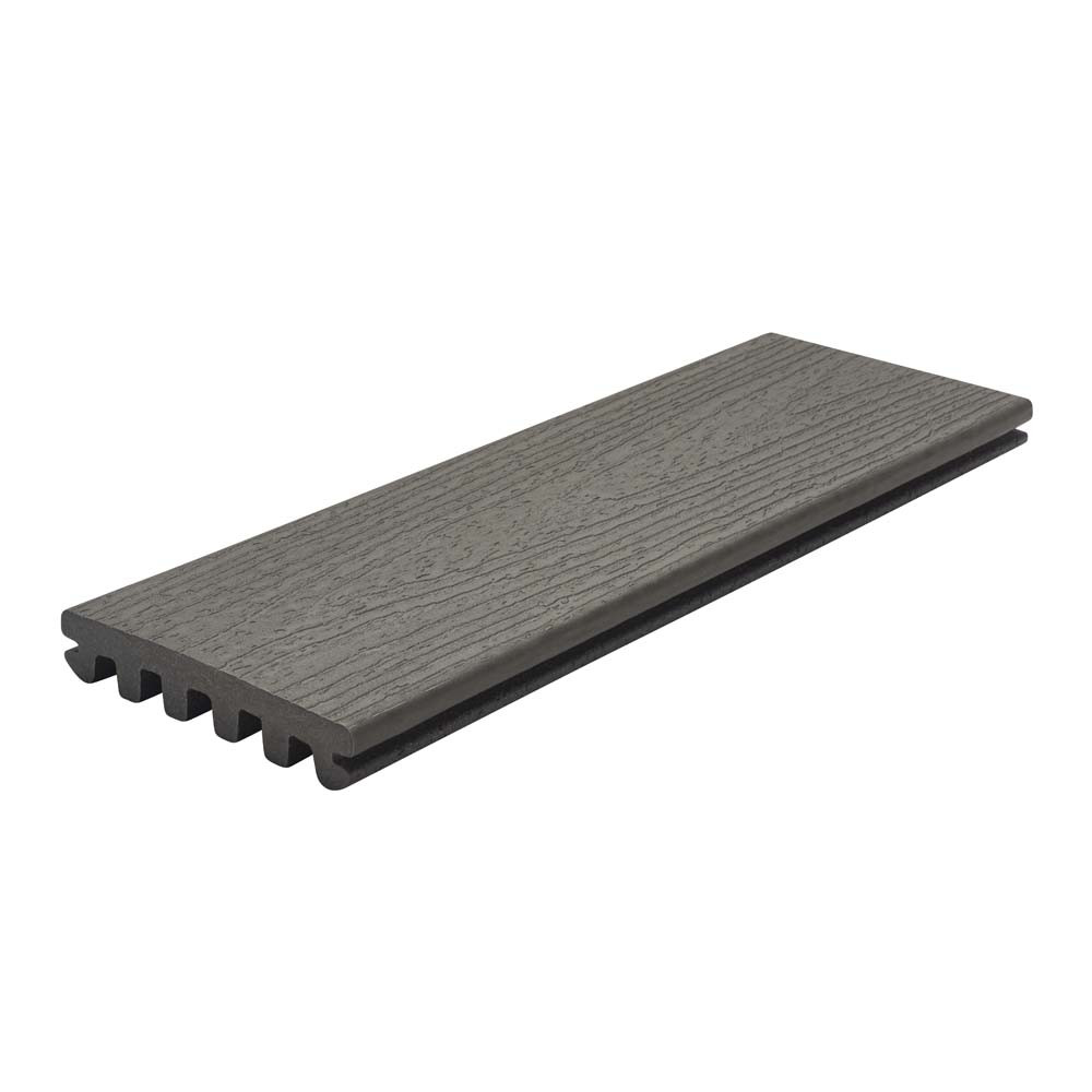 A stunning addition to your garden renovation project that will provide a prime spot for relaxing with family and friends, the 3660mm x 140mm Trex Enhance Basic Grooved Edge Composite Decking Board combines eco-friendliness with style, durability, and effortless installation. With a subtle woodgrain pattern, these boards are finished in a breathtaking and versatile shade of Clam Shell - a dark grey finish that exudes sleek and contemporary charm.