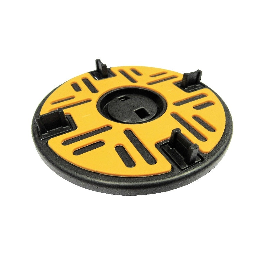 • The self-levelling headpiece design has four positioning lugs (fins) laid out in a crucifix formation set towards the edges of the headpiece. The design means that it robust, stable and durable. The headpiece has separate parts that allow up to 5% or 2.86 degrees of slope correction in all directions. This allows smooth movement and positioning of the paving slab. Slips and sharp tilting are avoided owing to the superior design and solid manufacture. The lugs (fins) separate paving slabs and tiles on the headpiece to allow sufficient drainage between slabs, which create a uniform paving line, so the slabs are laid entirely straight. A rubber anti-shock pad can slot onto the headpiece to give a better grip to the slab and help insulate against vibration and noise travelling through to the deck beneath.