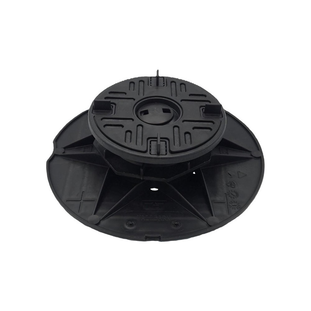 To save time during installation, the telescopic stem is twisted by hand and helps you create a completely flat upper surface. As a suspended system, the weight of the slab or decking keeps everything situated and in place. Rainwater can easily drain and run between and underneath to prevent pooling and reduce slippery surfaces.