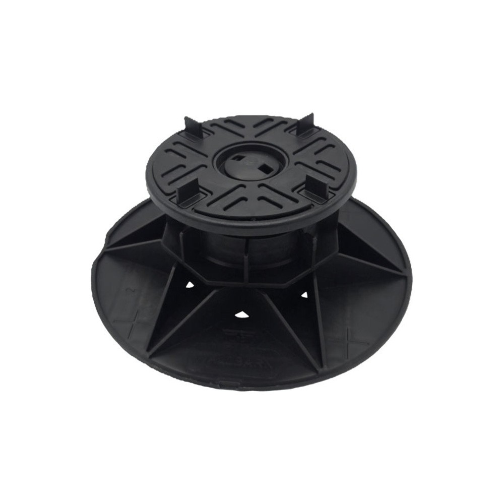 The lugs (fins) separate paving slabs and tiles on the headpiece to allow sufficient drainage between slabs. They create a uniform paving line, so the slabs are laid completely straight. A rubber anti-shock pad slots onto the headpiece over a series of ridges to give better grip to the slab and to help insulate against vibration and noise travelling through the pedestal to the deck beneath.