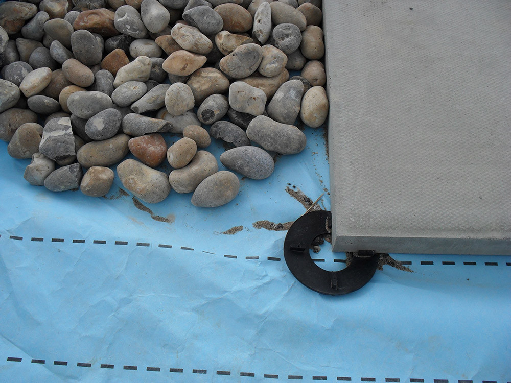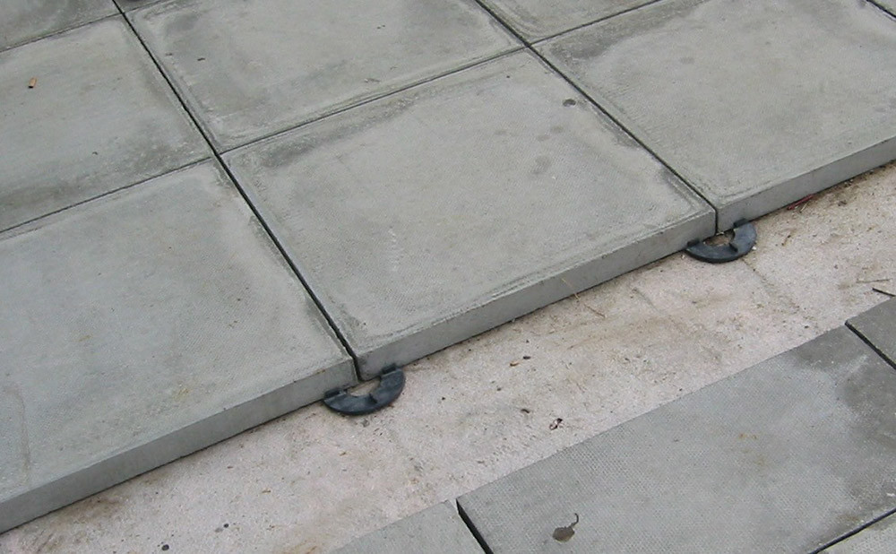 When paving slabs have been positioned correctly, this pedestal is securely held in place. It allows consistent spacing between paving while separating paving slabs from the base structure, and it facilitates water drainage beneath paving and sound insulation. Designed not to slip on surfaces, the pedestal maintains a neat appearance free of sand and cement, simplifying maintenance as slabs can be easily removed for inspection or repair.