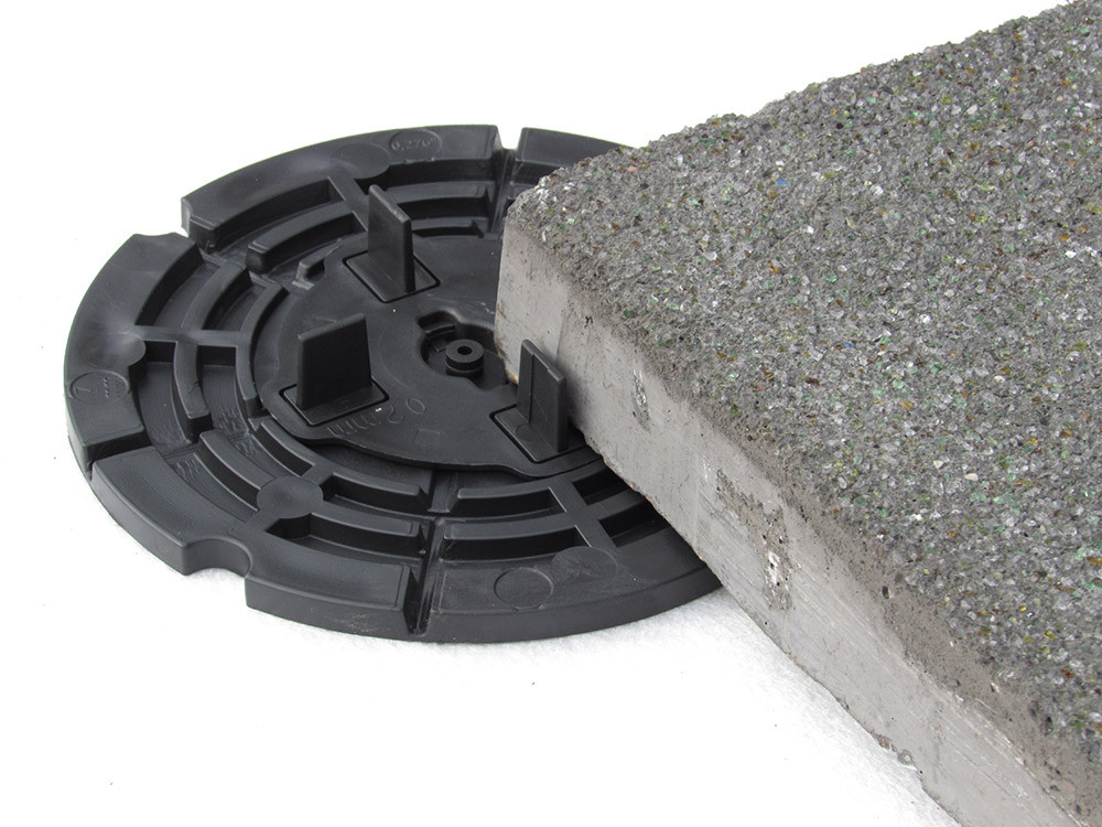 With plastic positioning lugs seamlessly integrated into the pad, they insert into a small hole at the centre of the disc for a design that guarantees the paving slabs are separated with consistent spacing while being secured into position. Similar to other products in Wallbarn's support range, mechanical fixings are not required as the surface is kept in place solely by the weight of the paving slab.
