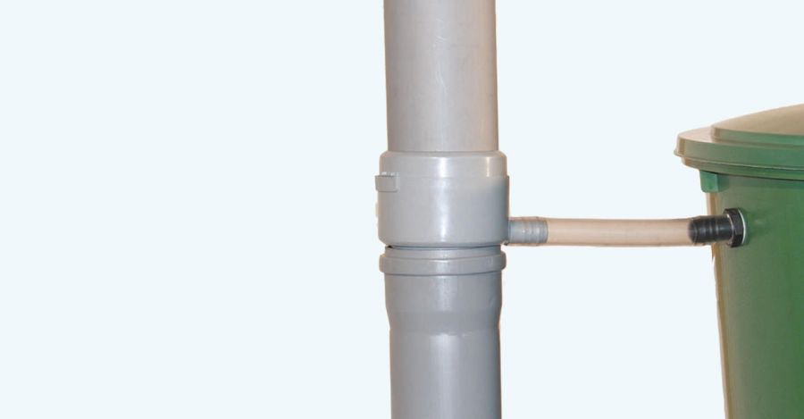 This water butt filling device reliably filters out large contaminants such as leaves while preventing full water butts from overflowing. It is simple to switch from summer to winter use and is suitable for a maximum roof area of 50m². It features a 2.5cm (1") side outlet with a hose and screw connection and is compatible with 7cm to 10cm downpipes.