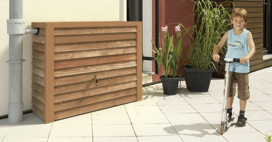 With a stunning wooden finish, this incredibly durable yet decorative rainwater storage tank is ideal for installing next to an exterior wall and is exceptionally weather resistant and UV-stable. With minimal space requirements and a large 350-litre storage volume, you can eas... Read More