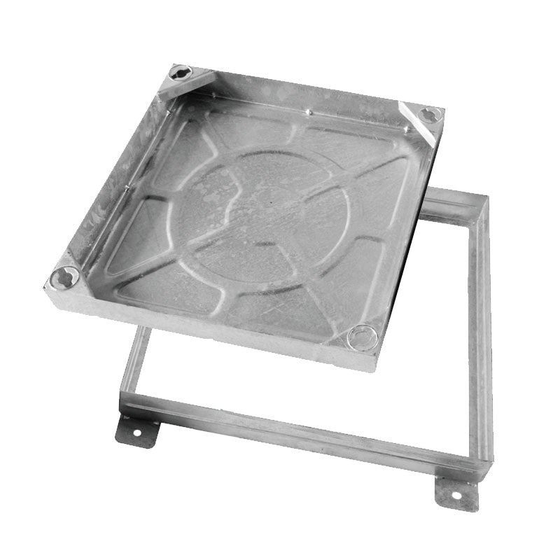 Manufactured from robust mild Steel, the 600mm x 450mm x 100mm Recessed 80mm Block Paving Manhole Cover is hot-dipped galvanised to prevent corrosion. It features plastic keyway blanking plugs to keep small items out and boasts a sturdy steel frame for maximum adhesion to bedd... Read More