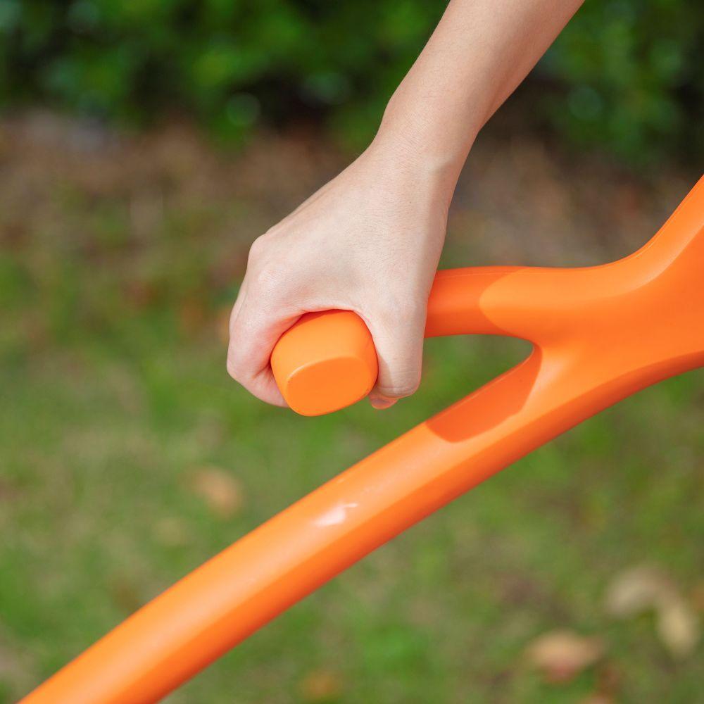 Grass combs guide blades for a cleaner cut, while the rear roller creates classic lawn stripes. The included trimmer neatly tidies edges, paths, and fences for a polished result. Both tools share one battery and charger for added value and convenience.