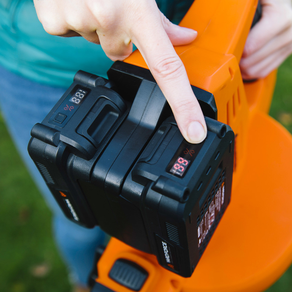 Powered by dual 20V Lithium-Ion 4.0Ah Samsung batteries, this tool delivers 40V cordless performance. Plus, its super-efficient charging system gets you back to work in just 60 minutes. The 3-in-1 function effortlessly transitions between blowing, vacuuming and mulching tasks. With an impressive 8:1 mulching ratio, the 35L collection bag holds more waste, meaning less time emptying. Tidying up is swift and easy without mess, thanks to the quick-release button.