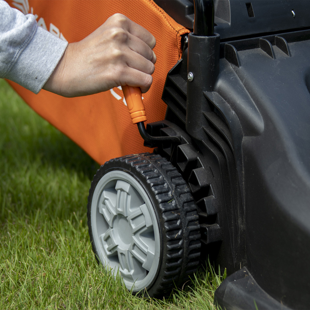 You can achieve a pristine lawn with the sharp steel blade, which provides an excellent cut and superior grass collection while minimising noise. You can customise your cutting heights, ranging from 25mm to 75mm, with central adjustments using a single lever to achieve the perfect look for your lawn throughout the seasons. The 40cm blade allows for five height adjustments.