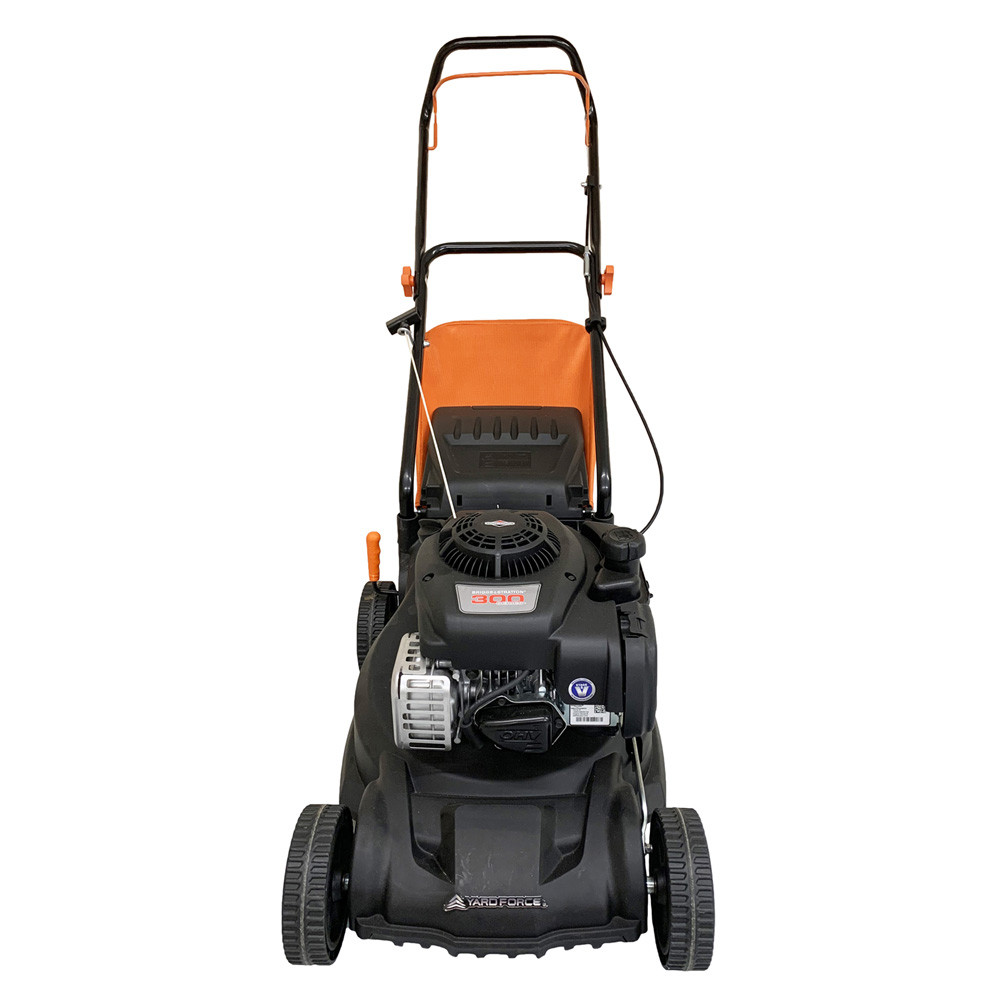 What's more, the 45-litre textile grass collection bag keeps clippings neatly contained. The front grass combs enhance airflow for improved grass collection, particularly when cutting at lower heights. For additional safety, the ergonomically designed handle features a soft grip and a blade-stop function upon release. Not only is this Yard Force mower a force to be reckoned with in performance, but it also boasts a sleek jet-black high-gloss deck with distinctive orange accents.